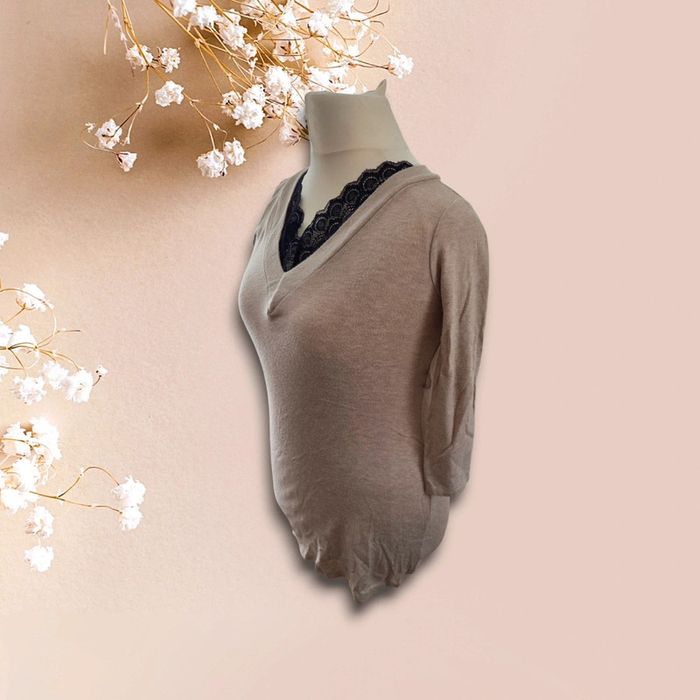 Robe en laine beige avec col V dentelle – Taille s - photo numéro 5
