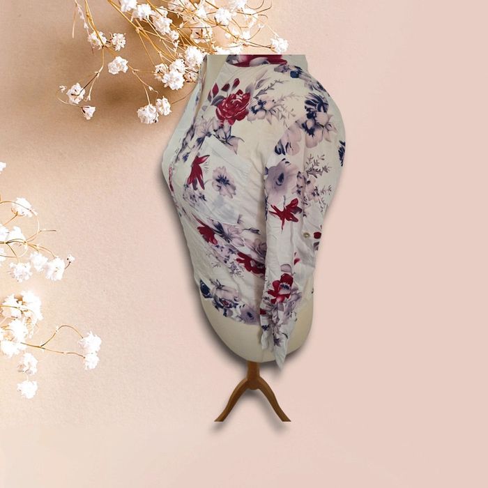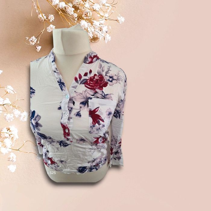 Chemisier blanc fleuri – Taille S – Élégant & léger - photo numéro 1
