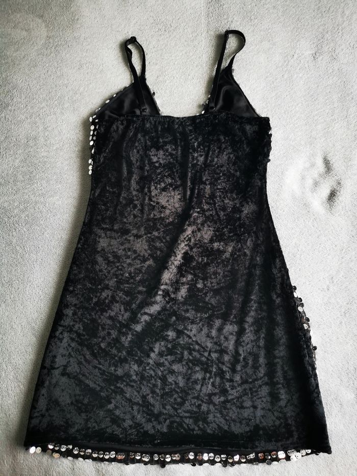 Robe de soirée taille S avec sequins devant et effet daim derrière, bretelles réglable, plus d'étiquette, bon état