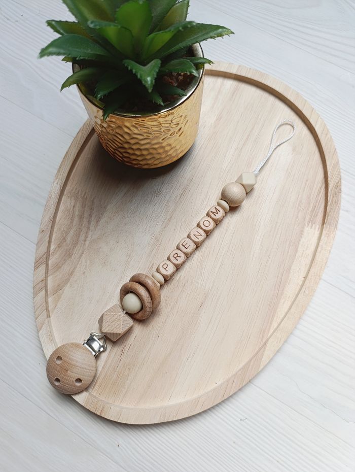 Attache tétine personnalisée Bois naturel et Silicone alimentaire Sans BPA ni autres substances toxique Différents coloris possibles, voir 2e photo