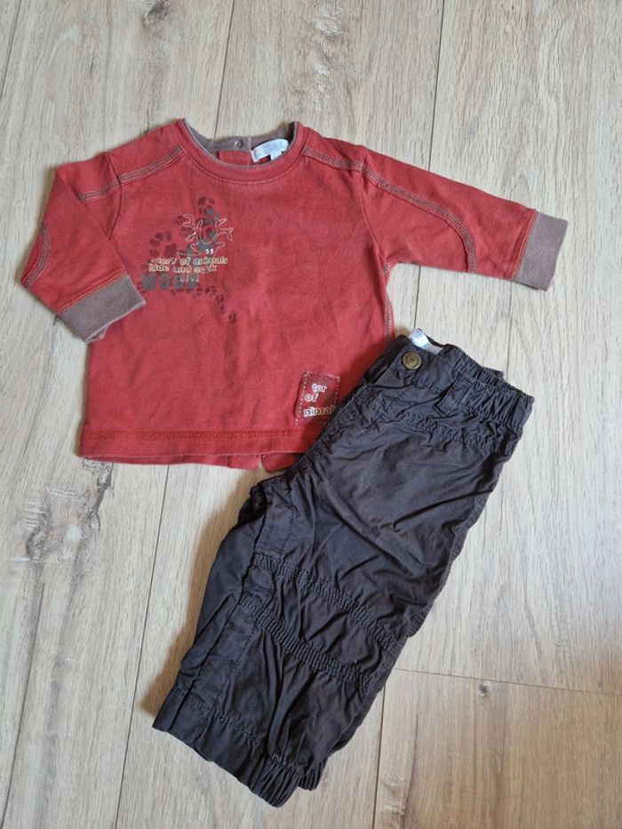Ensemble en bon état T-shirt avec ouverture intégrale dans le dos Pantalon, ouverture à l'entrejambe pour faciliter le change Mon dressing est rangé par taille. Pour voir tous mes vêtements en 9 mois, cliquez sur le lien #celine_yiyi_9m ATTENTION pour que les liens fonctionnent, pensez à supprimer vos filtres et recherches 😊