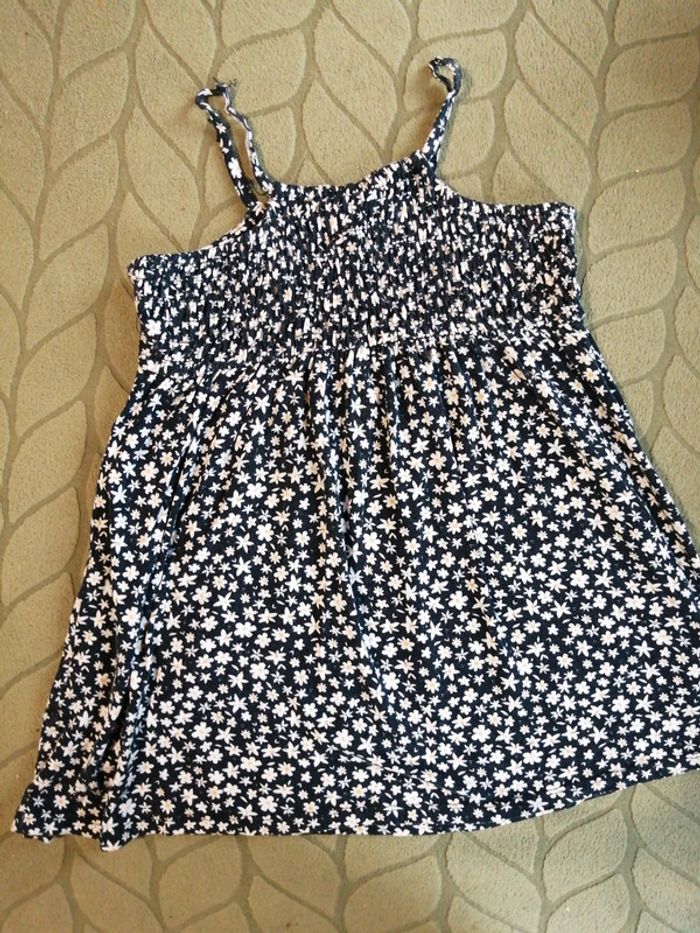 Robe légère fleurie, Bleue marine, Kiabi, 3 ans, Bretelles un peu lâches, un noeud avait été fait pour ajuster la robe
