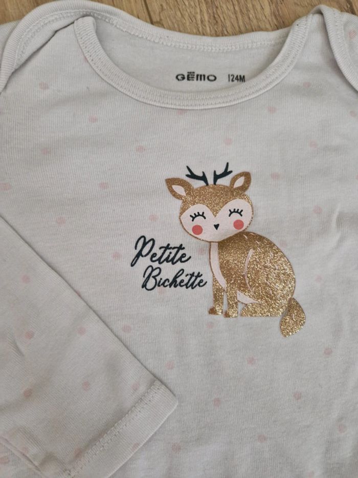 Lot de 3 bodys ML Motif : biche et bichette Très bon état Pressions toutes Ok Mon dressing est rangé par taille. Pour voir tous mes vêtements en 24 mois, cliquez sur le lien #celine_yiyi_24m ATTENTION pour que les liens fonctionnent, pensez à supprimer vos filtres et recherches 😊
