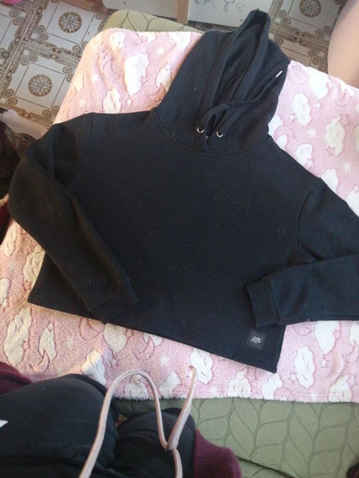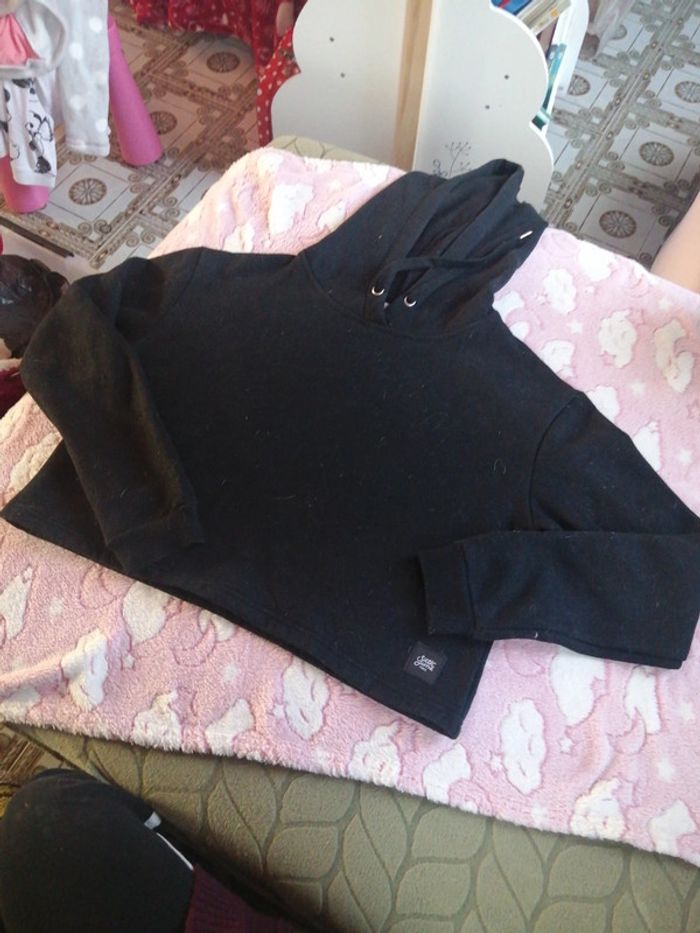 Sweat à capuche court, Noir, Taille M,