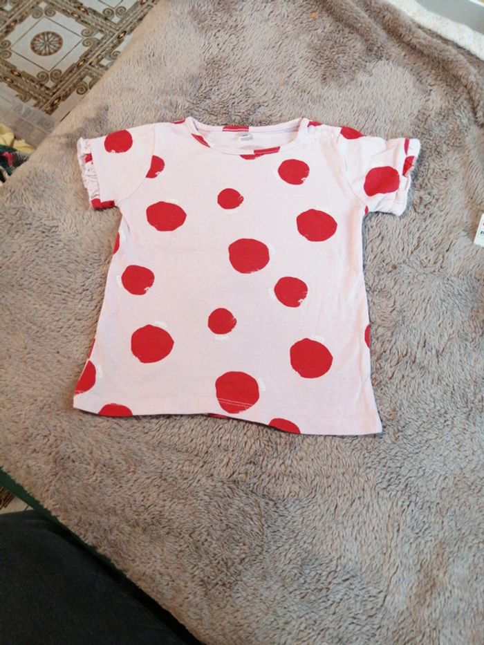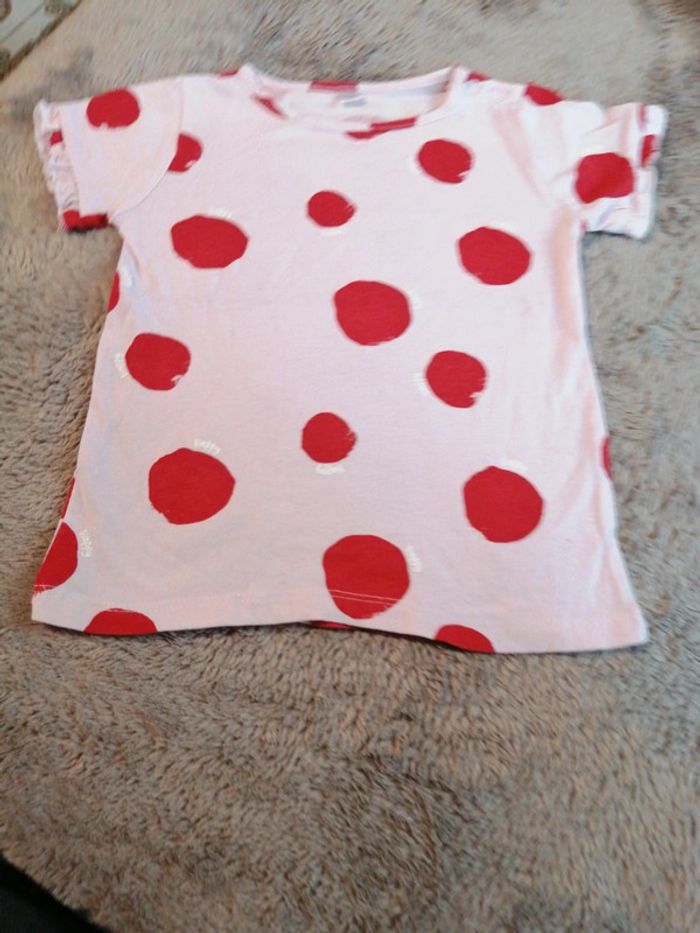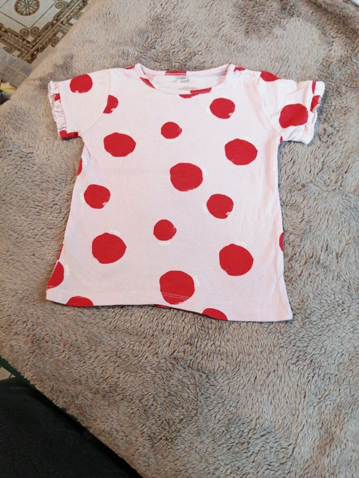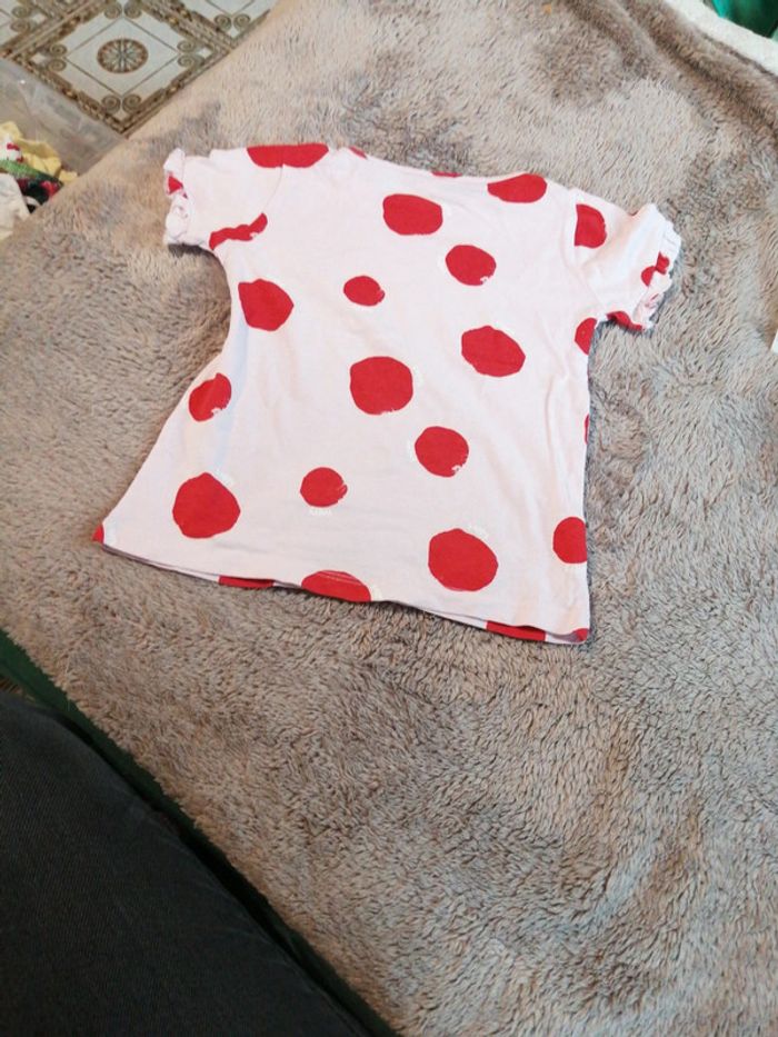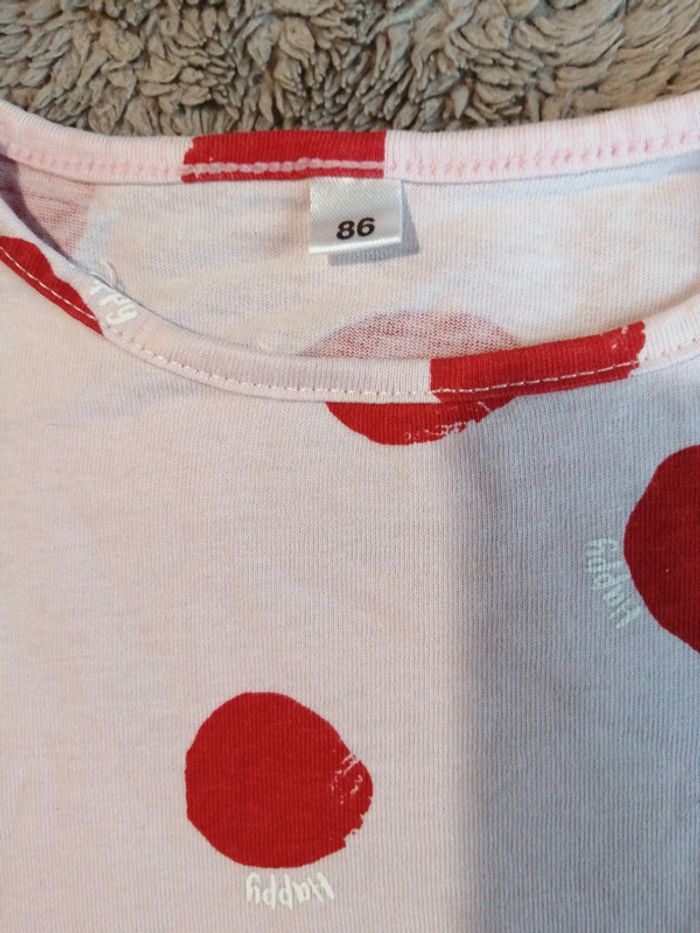 Tee-shirt rose à gros pois rouges, Comme neuf, 86 cm