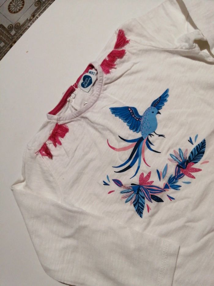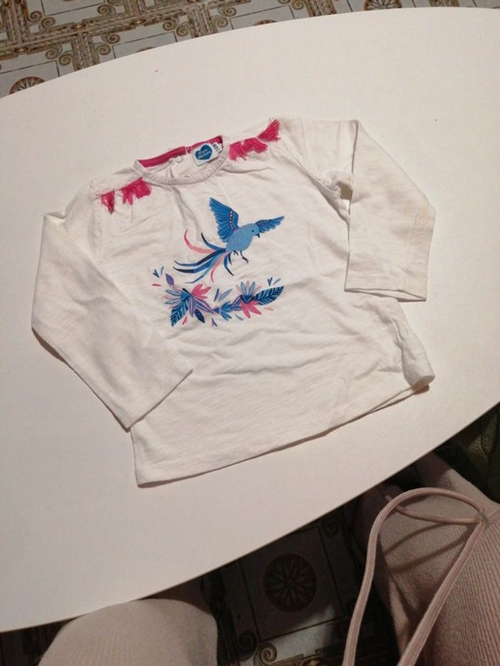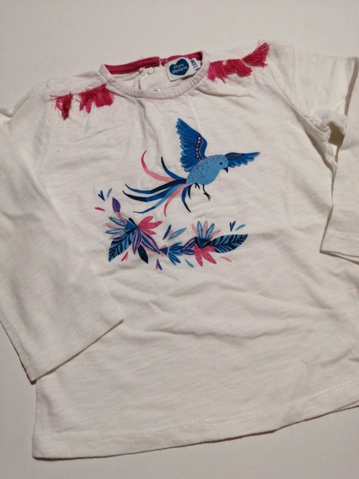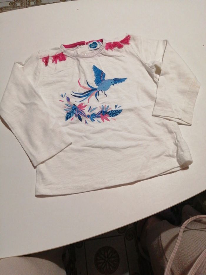 Tee-shirt manches longues colibri, Froufrous au niveau du col, Très bon état Box3