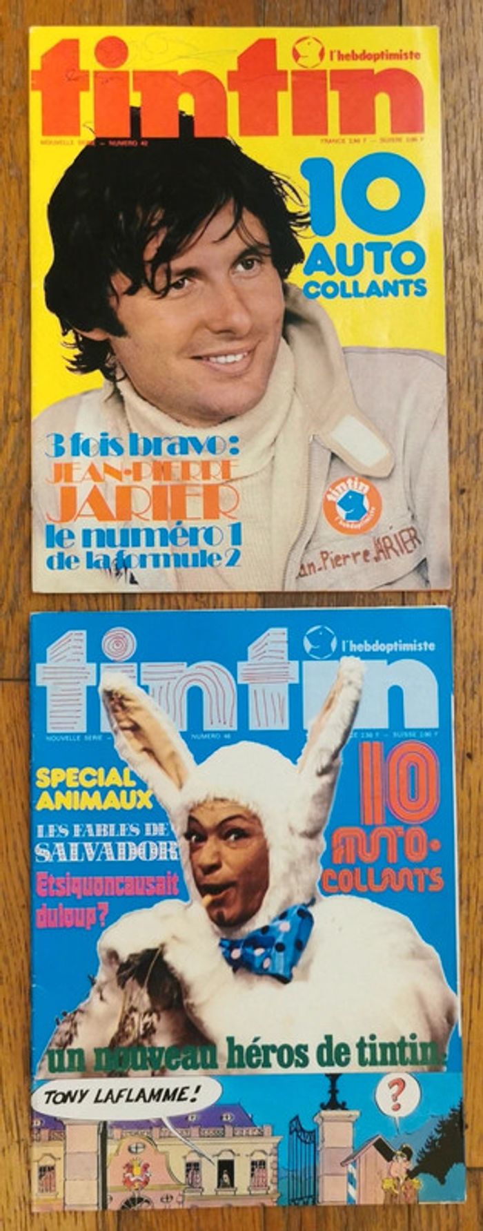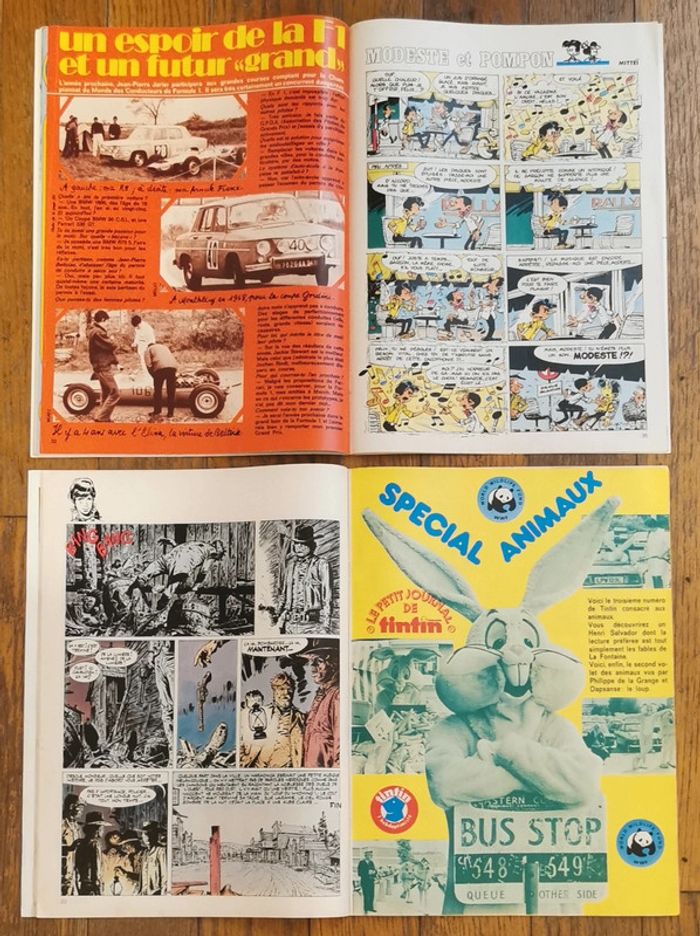 Lot de 2 anciens magazines Tintin + 39 fiches Écriture sur les 2 couvertures avant des magazines N°42 23 octobre 1973 Poster jean pierre jarlier Numéro 1 formule 2 N°48 4 décembre 1973 Poster Henri Salvador lapin + lot de 39 anciennes fiches Découpées des magazines tintin Années 70 Traces d'usure (voitures, moto, star...) Cf photos D'autres anciennes revues et articles vintage disponibles, N'hésitez pas à regarder mes autres annonces