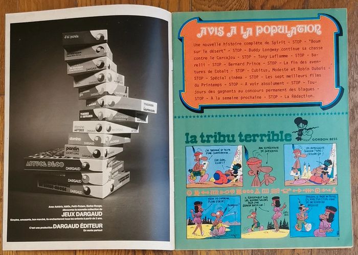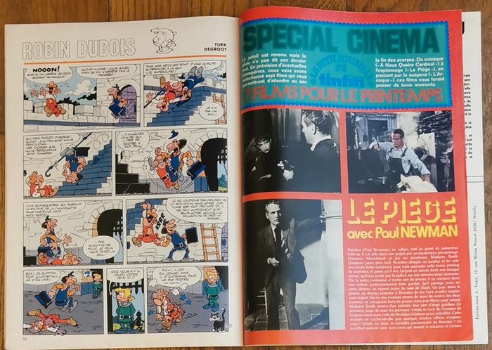 Ancien magazine Tintin l'hebdotimiste N°68 Nouvelle série 23 avril 1974 Avec poster géant Clint eastwood Couverture arrière : 4 fiches (dont voiture volkswagen scirocco, marlène joubert, lulu) Légères traces d'usure mais bon état Dernières pages coins bas un peu cornés Cf photos Bd : Spirit Tony laflamme Cubitus Buddy longway Modeste et pompon Barelli Bernard prince Cobalt Articles : Le petit journal de Tintin : spécial cinéma (Paul newman, Robert redford...) Anciennes publicités : Jeux dargaud Boisson fruité Page rétrospective voiture vaullante D'autres anciennes revues dont tintin et articles vintage disponibles, N'hésitez pas à regarder mes autres annonces