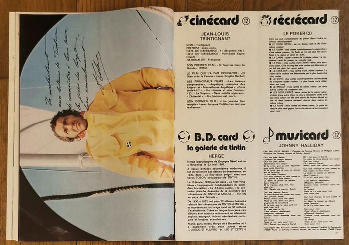 Ancien magazine Tintin l'hebdotimiste N°12 Nouvelle série 27 mars 1973 + 7 fiches (il en manque 1) (dont Hergé, Johnny hallyday) - mini poster Alain colas Le cadeau jeu n'est pas présent Quelques traces d'usure : - pliure milieu des pages Mais reste en assez bon état Cf photos Bd : Korrigan Cobalt Modeste et pompon Bruno brazil La tribu terrible Daniel futuro Benjamin Articles : Les archers de gengis khan Alain colas D'autres anciennes revues dont tintin et articles vintage disponibles, N'hésitez pas à regarder mes autres annonces
