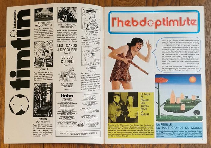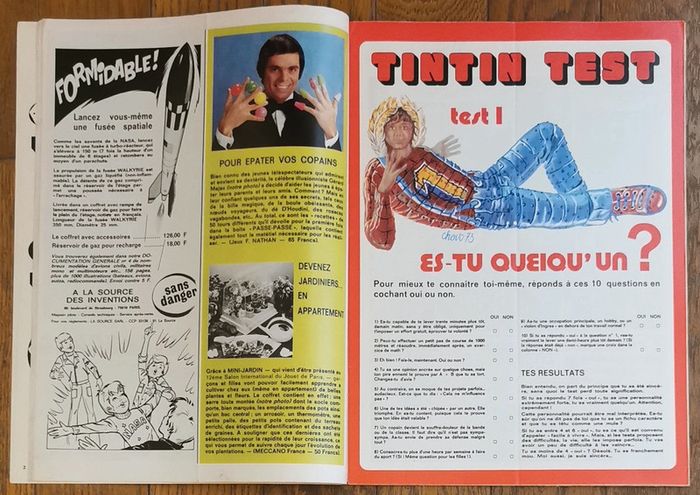 Ancien magazine Tintin N°10 l'hebdotimiste 1973 avec fiches vintage