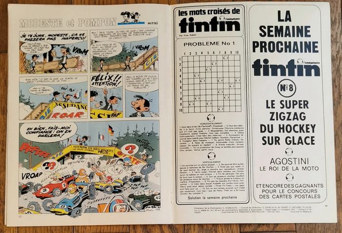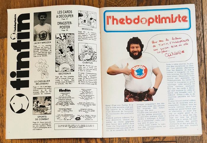 Ancien magazine Tintin l'hebdotimiste N°7 Nouvelle série 20 février 1973 Avec 7 fiches dont Claude François (il en manque 1) ⚠️ Le poster n'est pas présent Couverture Carlos Quelques traces d'usure : - trace pliure milieu des pages Mais reste en bon état Cf photos Bd : Chevalier beloiseau Benjamin Bernard prince Luc Orient Section R Bruno brazil Modeste pompon Articles : Jacky Mrozek patinage Sport de combat, arts martiaux D'autres anciennes revues dont tintin et articles vintage disponibles, N'hésitez pas à regarder mes autres annonces
