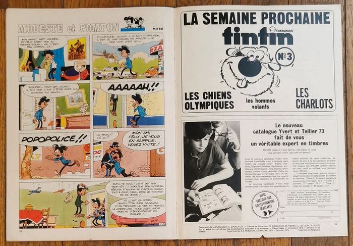 Ancien magazine Tintin N°2 l'hebdotimiste 1973 vintage
