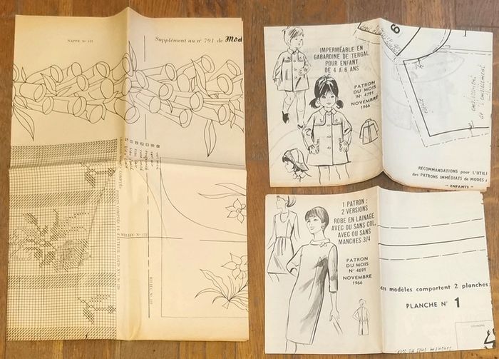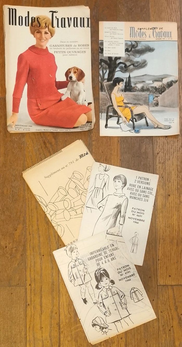 Ancien magazine Modes et travaux 1966 avec 3 patrons +supplément n°791 vintage
