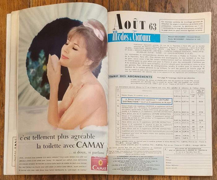 Ancien magazine Mode et travaux N°752 Août 1963 100 pages Avec supplément + 2 patrons Accompagné de son enveloppe d'expédition d'époque Quelques Traces d'usure : ⚠️ Manque les dernières pages (manque de 99 à 106) - tranche un peu abîmée - enveloppe d'expédition abîmée Cf photos Pages : Ouvrage Tricot Couture Mode Cuisine Déco Jardinage Nombreuses anciennes publicités Vintage D'autres anciennes revues dont modes et travaux et articles vintage disponibles, N'hésitez pas à regarder mes autres annonces