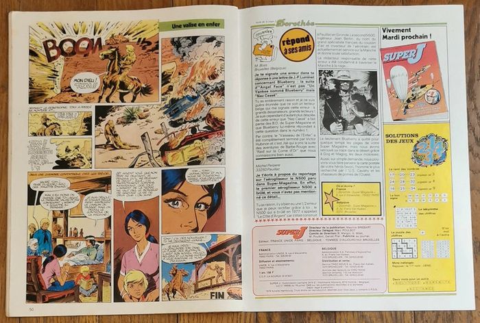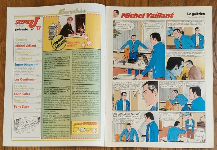 Ancien magazine Super j Le journal des super jeunes N°17 1979 Légères traces d'usure Bon état Bd : Michel vaillant Dan cooper Los gringos Marlin l'enchanteur Les gentlemen Colin colas Gigantik Tony stark Page Dorothée répond à ses amis Super magazine Windsurf Plus grande île de forage du monde Super stars Portrait Hervé vilard Fiche voiture dome 00 RL 24h du Mans Jeux Vintage D'autres anciennes revues et articles vintage disponibles, N'hésitez pas à regarder mes autres annonces
