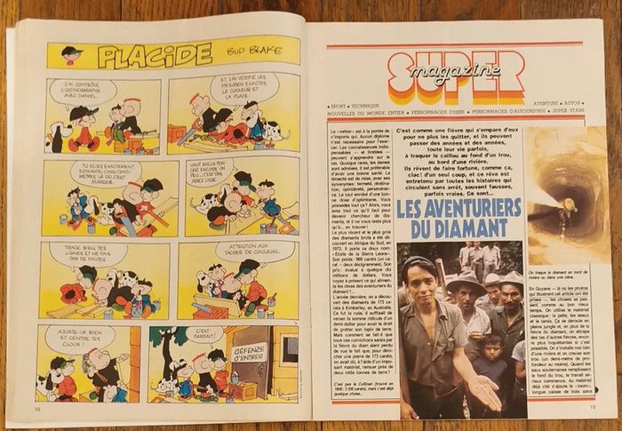Ancien magazine Super J Le journal des super jeunes N°37 Avec cadeau autocollants 1979 Avec Page Dorothée répond à ses amis Quelques traces d'usure Petit bout papier arraché sur couverture avant sinon reste en bon état Cf photos Bd Tanguy et laverdure Marlin l'enchanteur Éric castel Placide Julie wood bol d'or Colin colas Jeremiah Barbe rouge Les cro-magnons Super magazine Les aventuriers du diamant Super stars Portrait Miguel bose La terreur tombe du ciel Le téléphone comment ça marche Jeux Vintage D'autres anciennes revues et articles vintage disponibles, N'hésitez pas à regarder mes autres annonces
