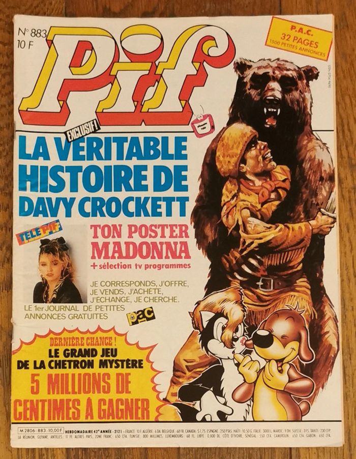 Ancien magazine Pif (sans le gadget ni poster) N°883 1986 Quelques traces d'usure mais reste en bon état Cf photos Bd Davy crocket Pif Léonard Smith et wesson Boule et bill Journal des petites annonces Jeux Vintage D'autres anciennes revues et articles vintage disponibles, N'hésitez pas à regarder mes autres annonces