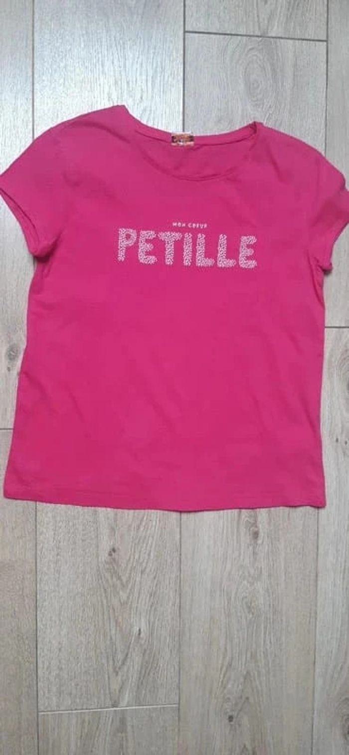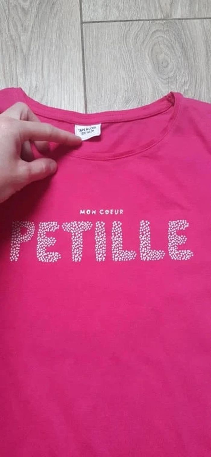 Tee-shirt MC tape à l'oeil rose "mon coeur pétille" 10 ans en très bon état - photo numéro 2