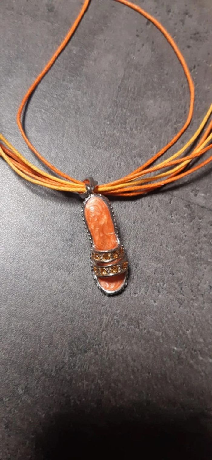Lot de 2 superbes colliers fantaisistes orange / rose motif chaussures neufs jamais portés - photo numéro 4