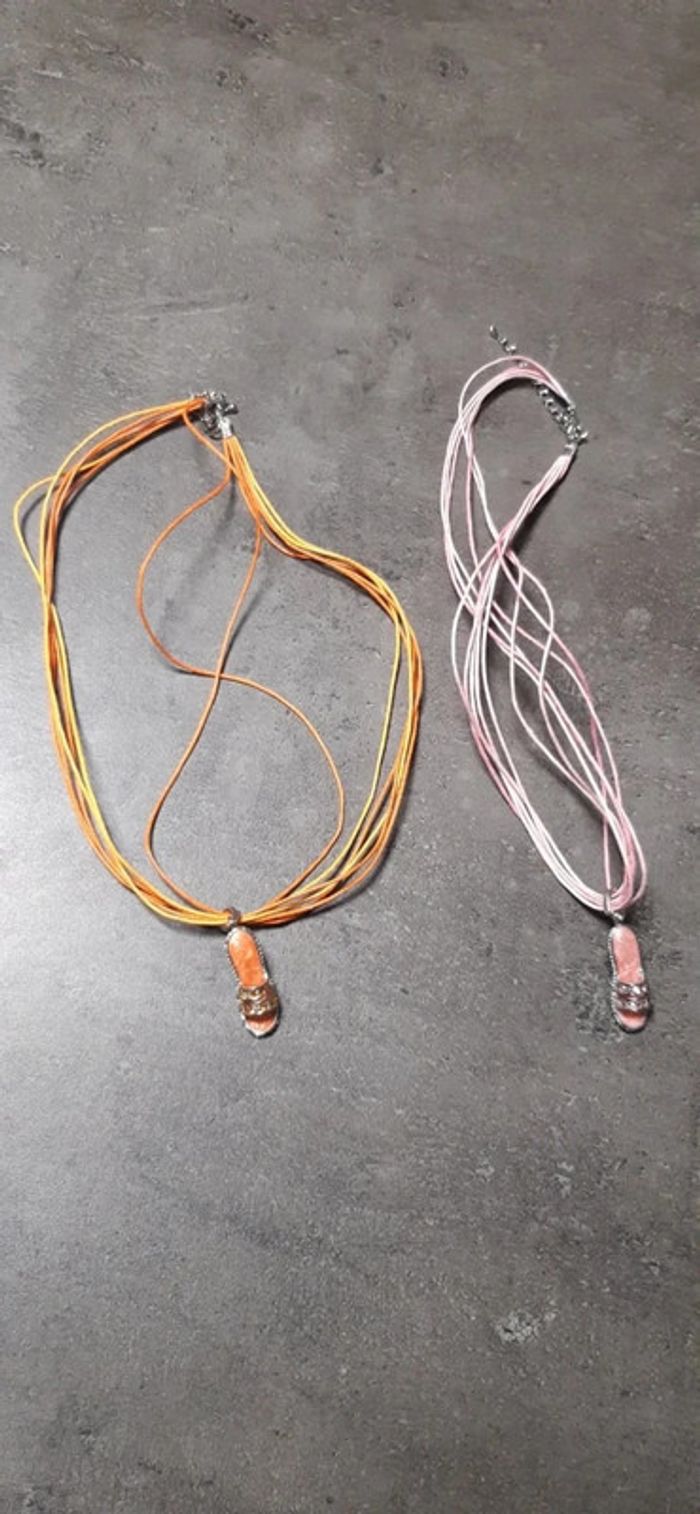 Lot de 2 superbes colliers fantaisistes orange / rose motif chaussures neufs jamais portés - photo numéro 2