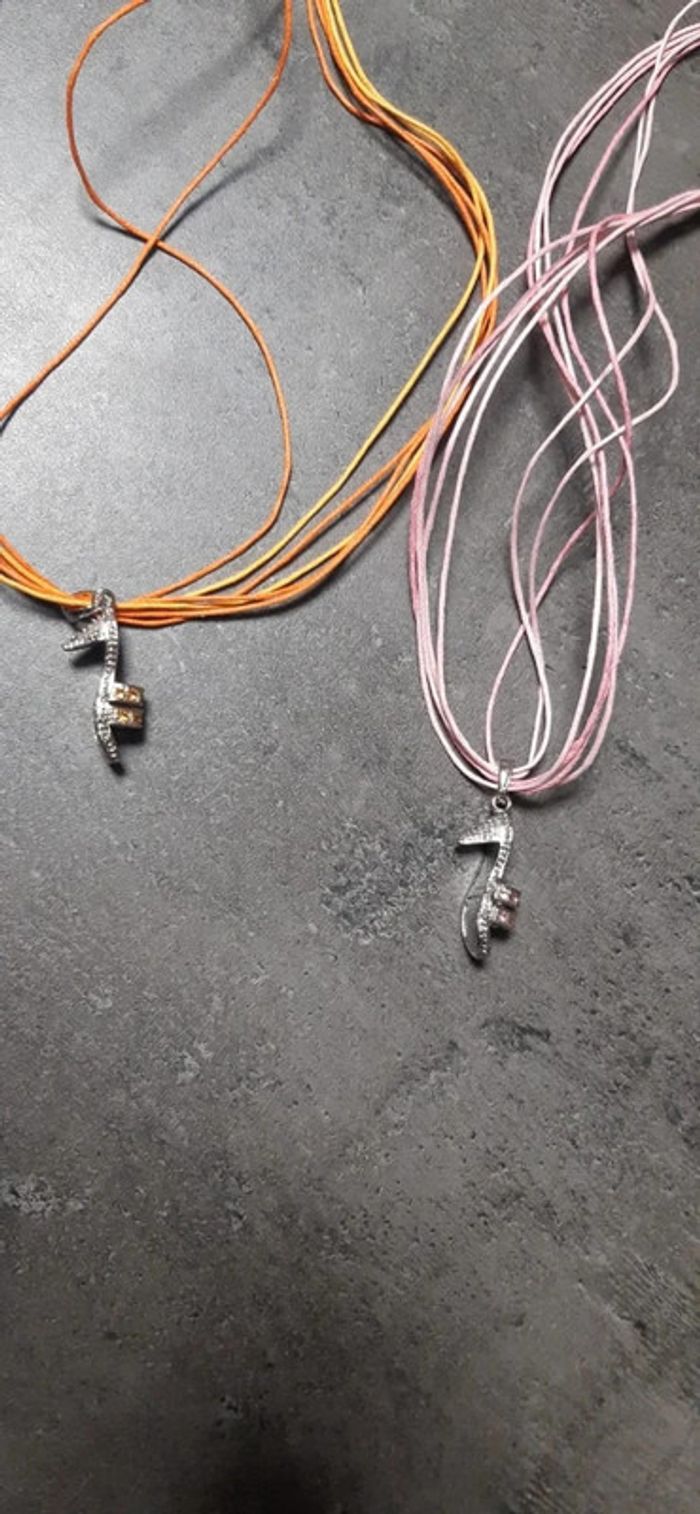 Lot de 2 superbes colliers fantaisistes orange / rose motif chaussures neufs jamais portés - photo numéro 3
