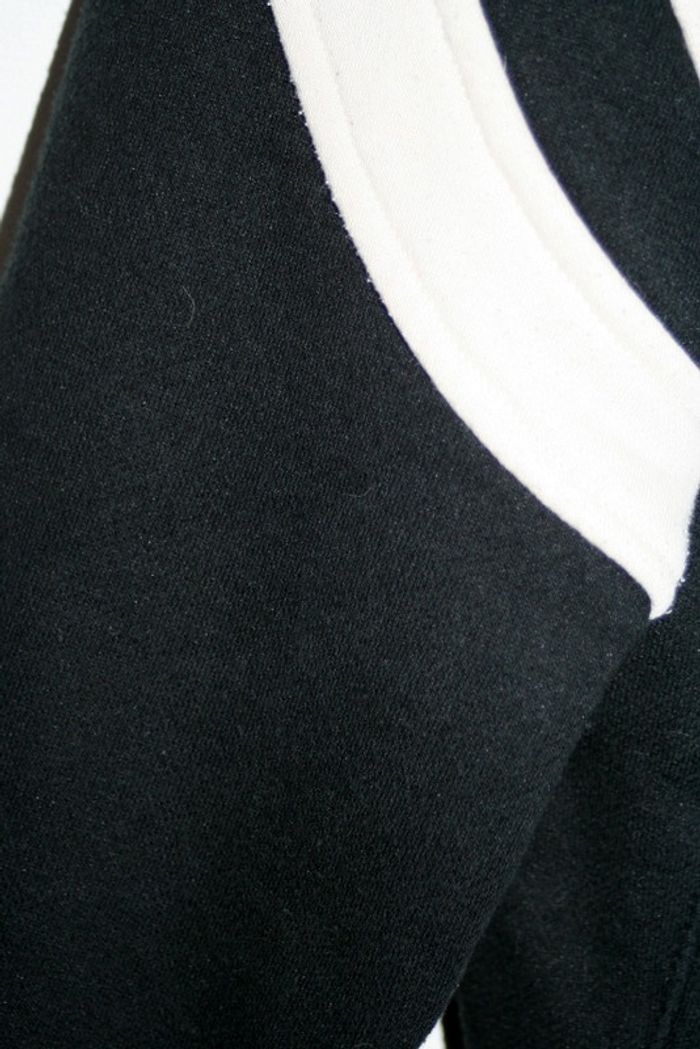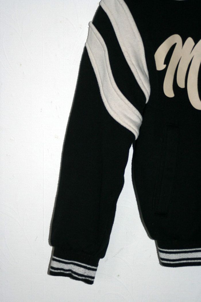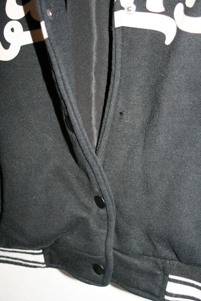 Teddy noir et beige de chez Bershka taille XS mais taille grand, un peu pelucheux par le lavage, fermeture par pressions (il en manque une cf photo), petit trou au niveau de la manche droite cf photo, 55cm de long, 55cm d'aisselle à aisselle, 50cm d'épaule à épaule, 650g