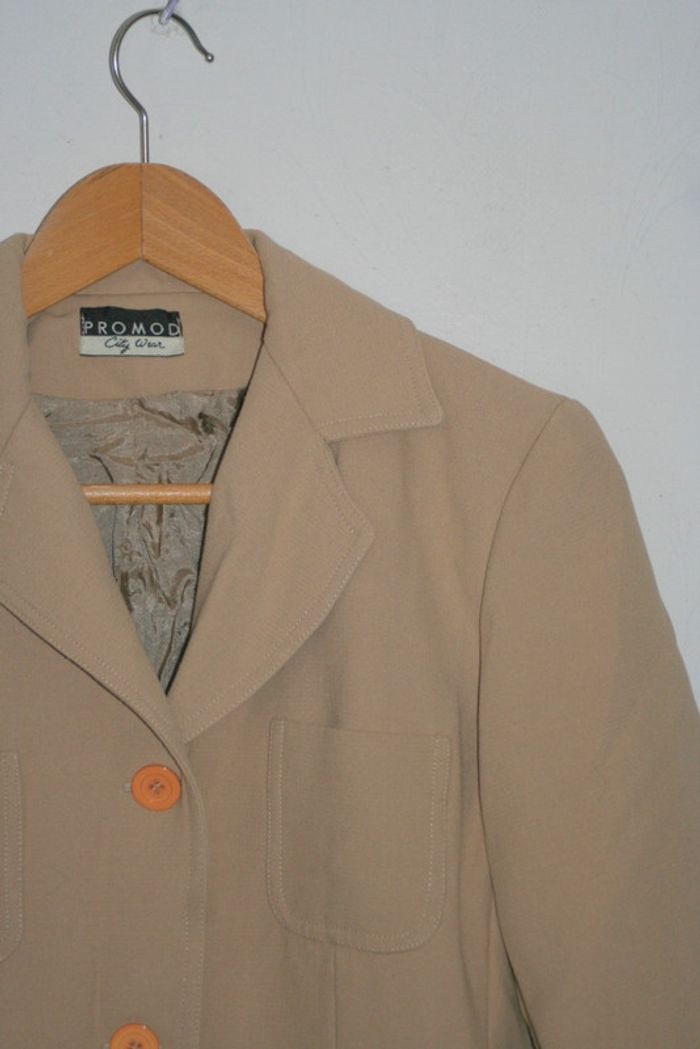 Veste beige de chez Promod, taille 42, 49cm d'aisselle à aisselle, 66cm de long, 40cm d'épaule à épaule, bouton de rechange à l'intérieur, 800g