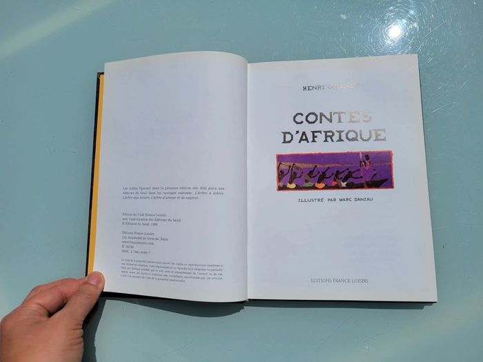 CONTES D'AFRIQUE HENRI GOUGAUD Dans ce recueil se trouvent des contes sur la communion avec la nature, la présence du surnaturel et de mondes extraordinaires, le hasard, ou encore la rencontre inespérée de l’amour. Autant de sujets de prédilection de la tradition africaine. Extrêmement savoureux, chaque conte est porteur d’enseignements et se conclut par une morale imparable. Très bon état Mes autres livres enfants : #livreenfantmooglou