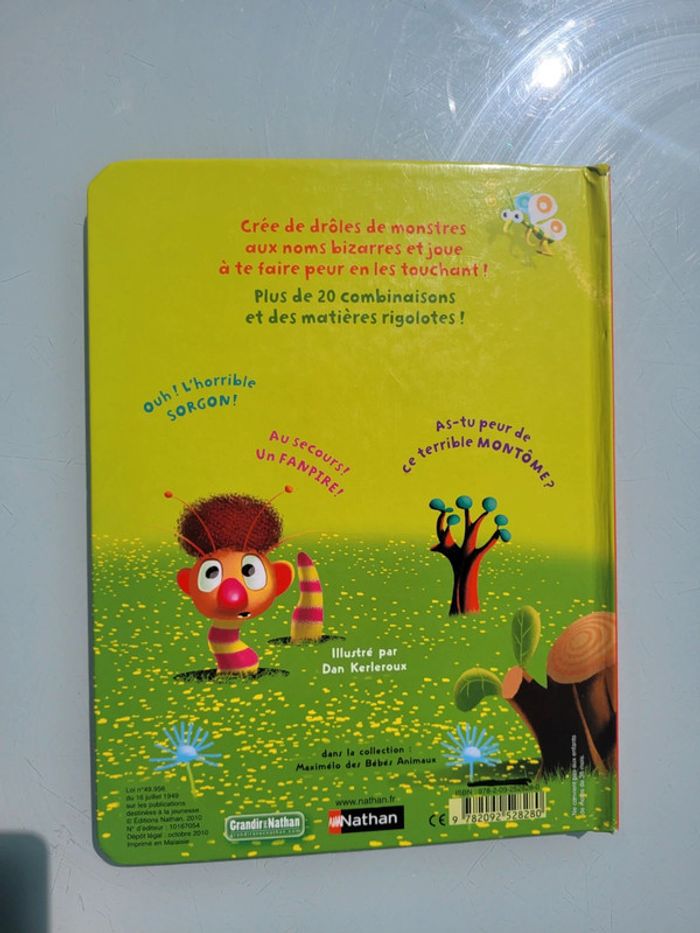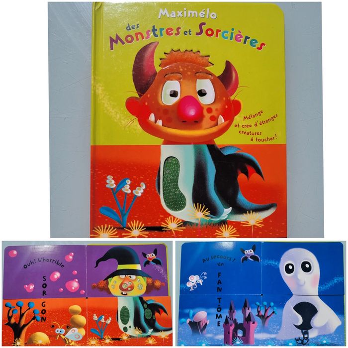 MAXIMÉLO DE MONSTRES ET SORCIÈRES Crée de drôles de monstres aux noms bizarres et joue à te faire peur en les touchant ! Plus de 20 combinaisons et des matières rigolotes !. 19.7 x 25.8 En très bon état Mes autres livres à toucher : #livreatouchermooglou Mes autres livres enfants : #livreenfantmooglou