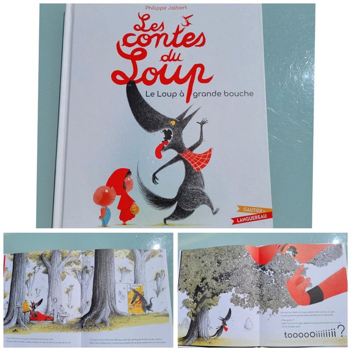 ÉDITIONS GAUTUER.LANGUEREAU LES CONTES DU LOUP LE LOUP À GRANDE BOUCHE Ce matin le loup est contrarié ! Il en a marre de manger du lapin sans arrêt, alors c’est décidé, il va sortir de la forêt à la recherche d’un nouveau repas savoureux. Pour choisir, il doit savoir ce que mangent ses futures proies. Il risque d’être surpris. Dimensions 20.7 x 1 x 23.8 cm Très bon état Mes autres livres enfants : #livreenfantmooglou