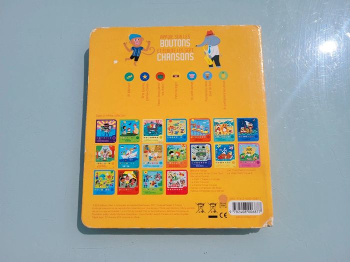 DES CHANSONS À ECOUTER PETITES COMPTINES REGGAE 7 comptines adaptées pour découvrir ses premières sonorités reggae. À écouter en toute autonomie grâce à un boîtier sonore : "Un éléphant", "Tête, épaules, genoux et pieds", "Savez-vous planter les choux ?", "Petit escargot", "Un petit cochon", "Promenons-nous dans les bois", "Un petit pouce qui danse". COUVERTURE UN PEU ABÎMÉE, INTERIEUR EN BON ÉTAT, LES 7 PUCES FONCTIONNENT Mes autres livres sonores : #livresonoremooglou Mes autres livres enfants : #livreenfantmooglou