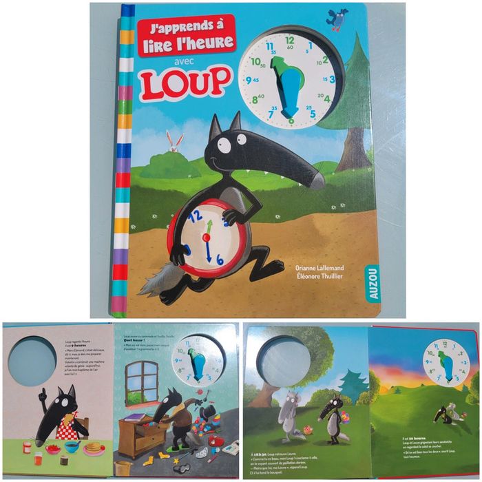 J'APPRENDS À LIRE L'HEURE AVEC LOUP TOUT CARTON Loup a un réveil difficile : 7 heures du matin c'est trop tôt pour se lever ! Mais vite, il doit retrouver Valentin à 10 heures pour son baptême en machine volante... Suis Loup à chaque moment de son incroyable journée et apprends à lire l'heure en tournant les aiguilles de l'horloge. Dimensions 24.5 x 1.5 x 29.9 cm En très bon état Mes autres livre de Loup : #leloupmooglou Mes autres livres enfants : #livreenfantmooglou