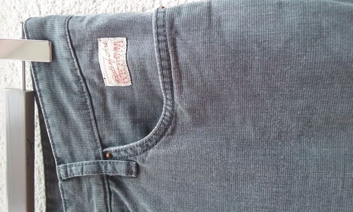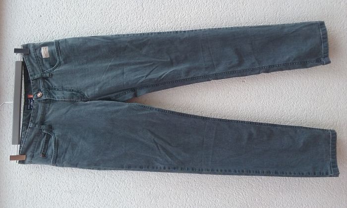 Très belle coupe regular fit (droite), fermeture boutonnée et zippée, 97% coton-3% élasthanne, taille US 31/34 soit T40.