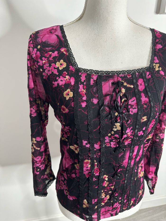 - Dentelle au niveau du col et à l’avant