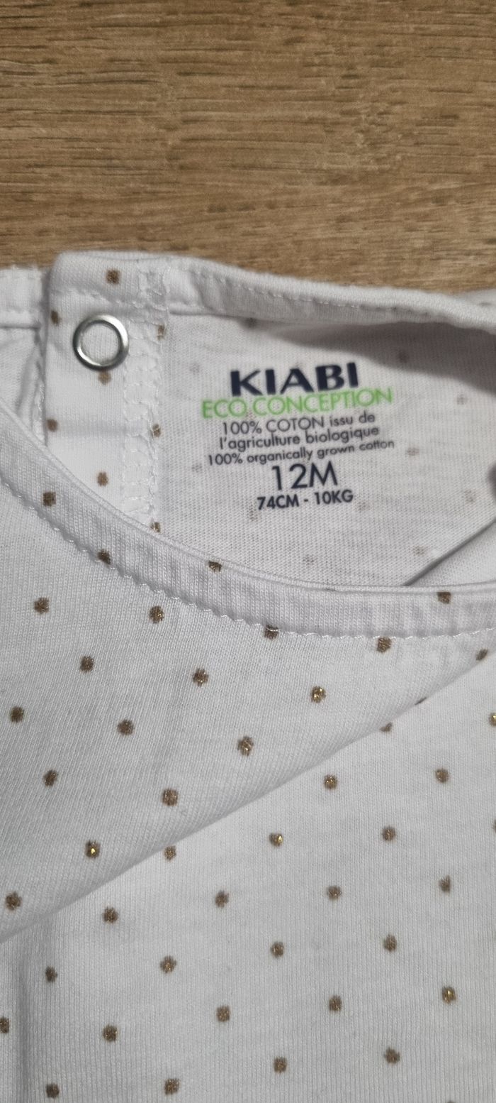 T-shirt à manches courtes à pois dorés Fermeture par boutons pression le long du dos Kiabi taille 12 mois Neuf