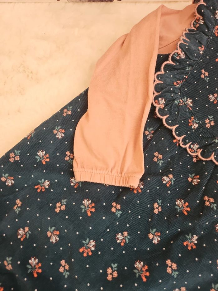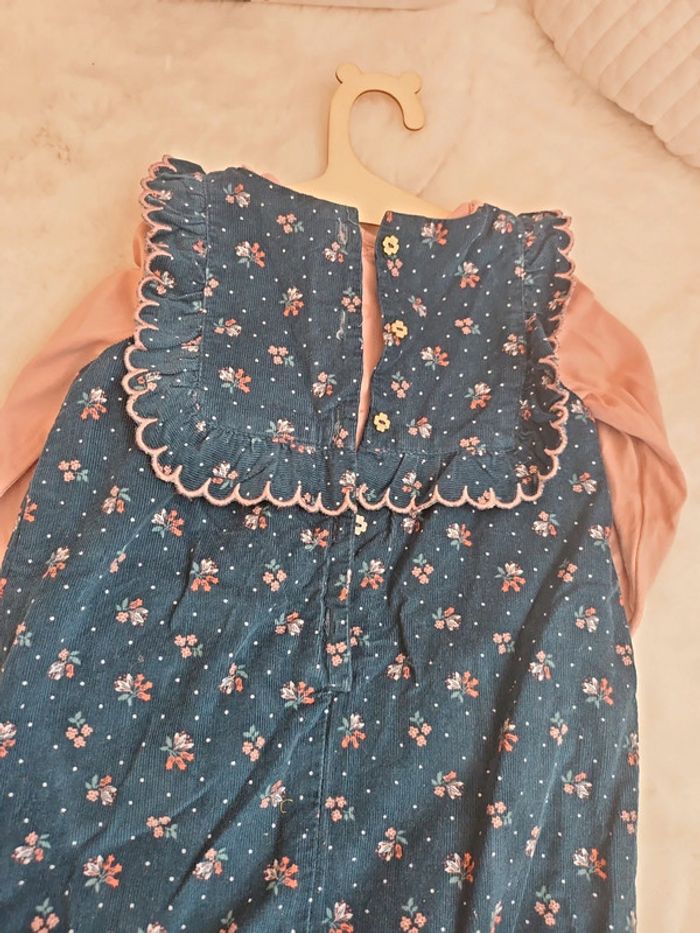 Ensemble bodie teeshirt + barboteuse velours fleurs bleu - photo numéro 4