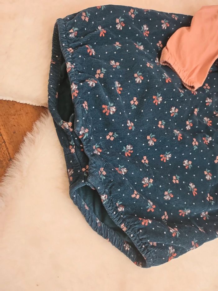 Ensemble bodie teeshirt + barboteuse velours fleurs bleu - photo numéro 5