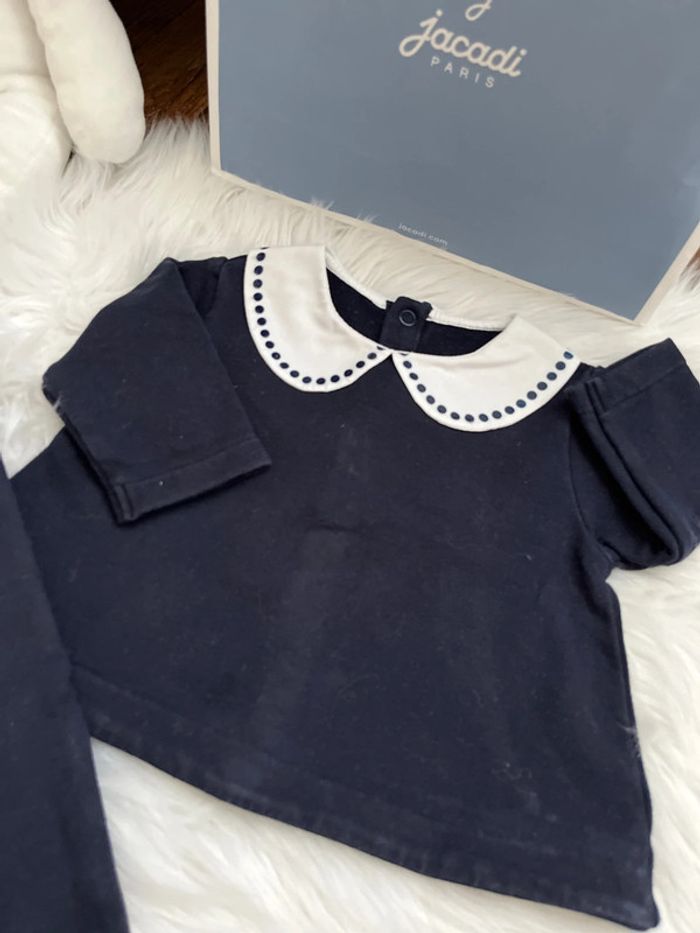 #jacadi Taille 3 mois #hilldinggarçon3mois Petit coup de fer sur les pois du col ça a légèrement effacé ceux ci, mais vraiment faut avoir l’œil dessus constamment pour le voir