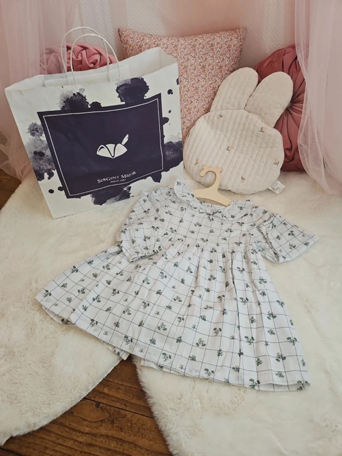 Robe blanche à carreaux vert fleurs - photo numéro 1