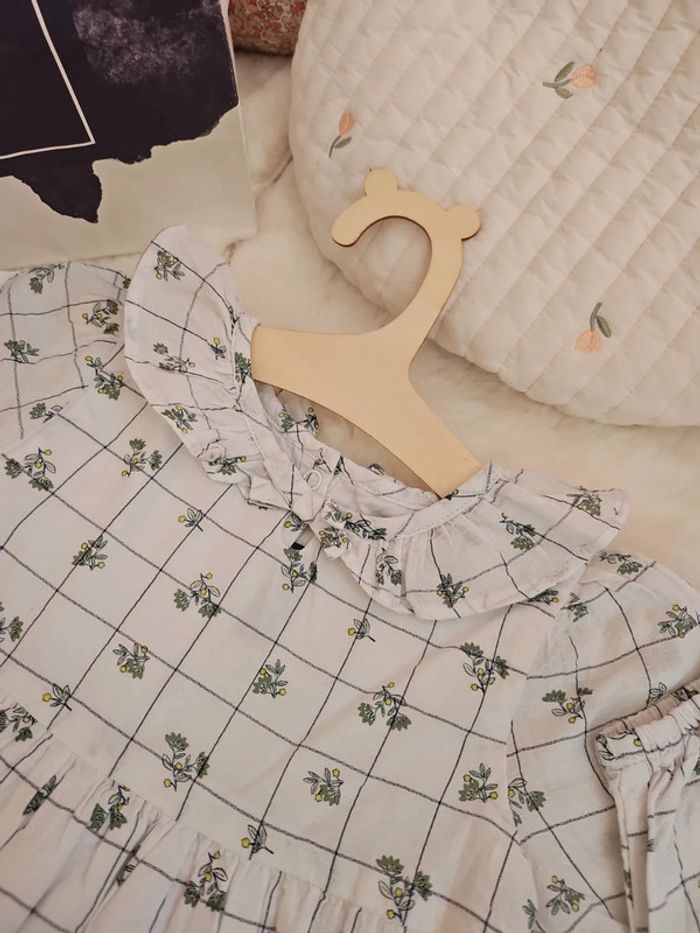 Robe blanche à carreaux vert fleurs - photo numéro 5