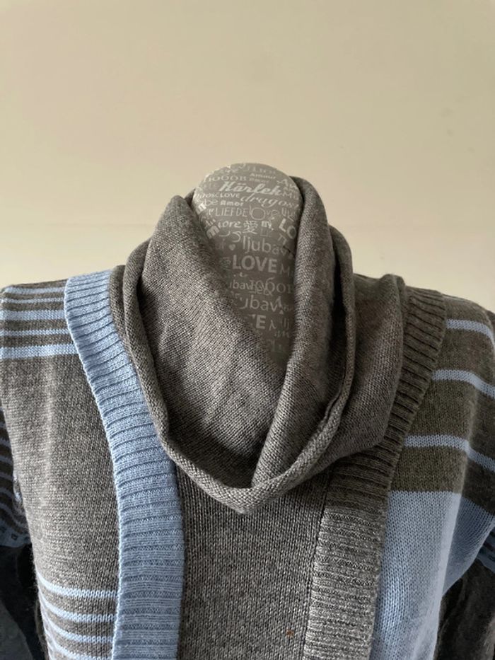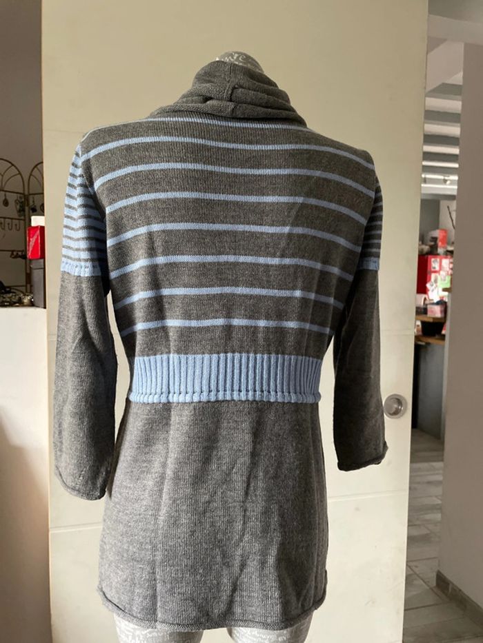 Pull gris et bleu avec grand col, assez léger, très bon état #hiverfemme38_sweetygirl3010