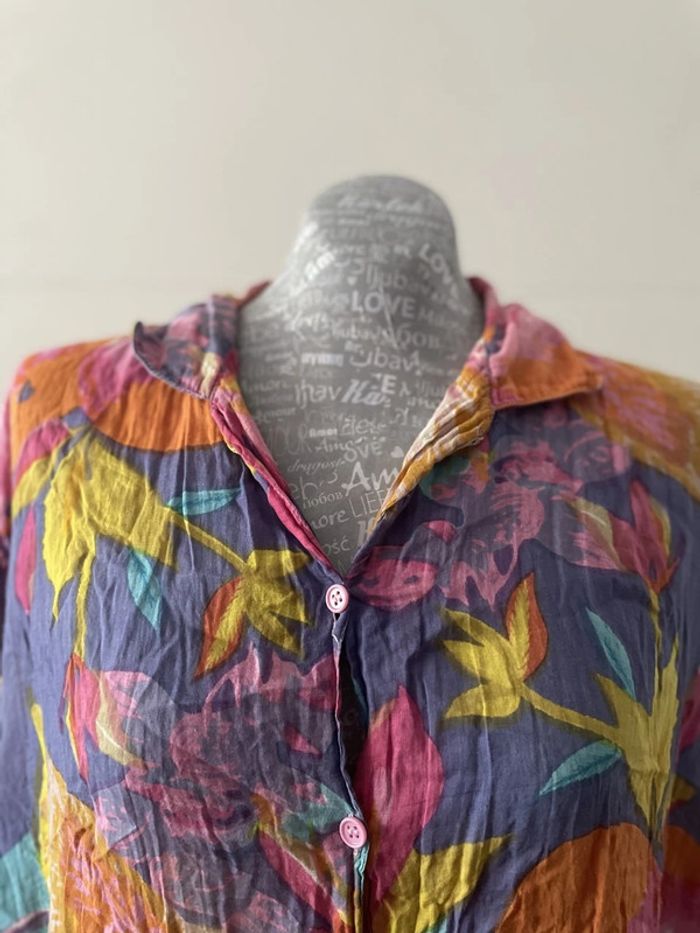 tunique fine colorée, manches 3/4, très bon état aisselles à aisselles: 67cm longueur épaule-bas: 78cm