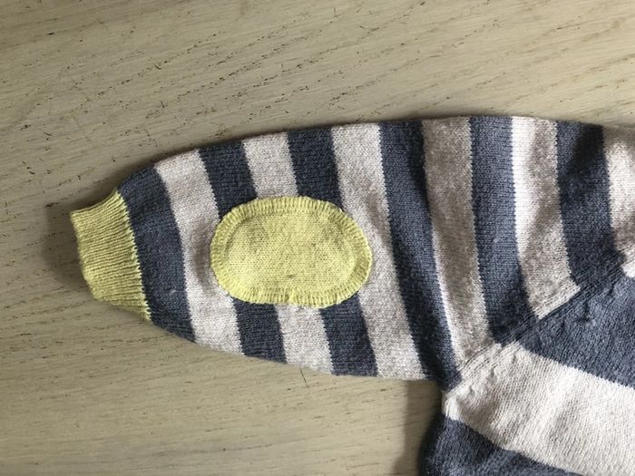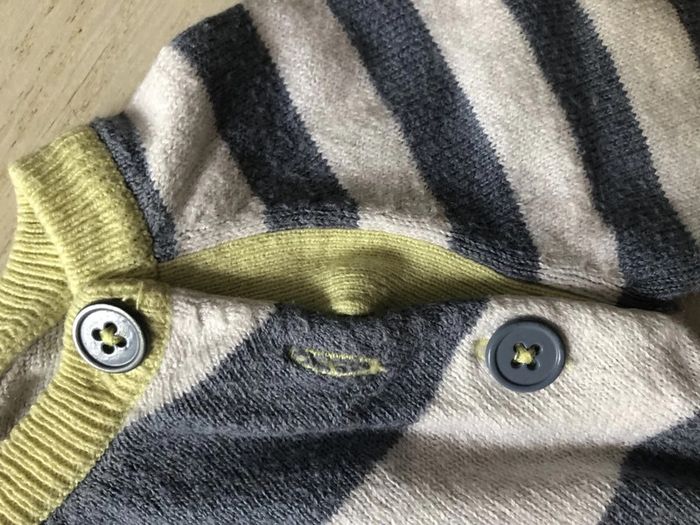 petit pull léger avec coudières, il s'attache devant avec des boutons de chaque côté, du côté gauche il manque 1 bouton (voir photo 2), mise à part cela il est en très bon état #hivergarçon1mois_sweetygirl3010 #etegarçon1mois_sweetygirl3010