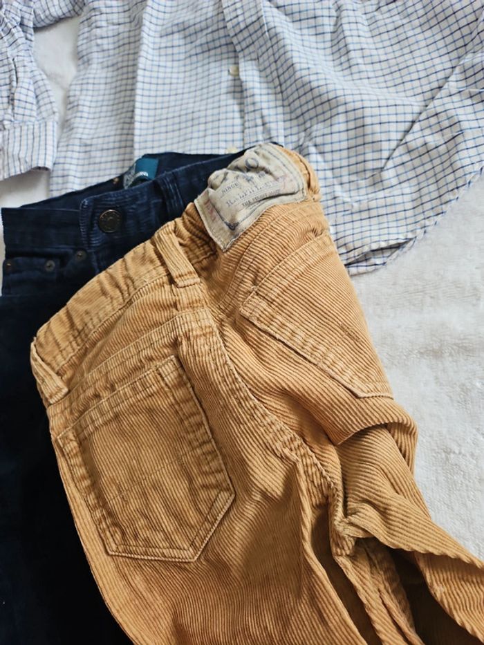 Velours Un marine et un camel velour en tres bon etat La chemise même marque a des traces lie au rangement qui peuvent partir éventuellement ( offertes avec )