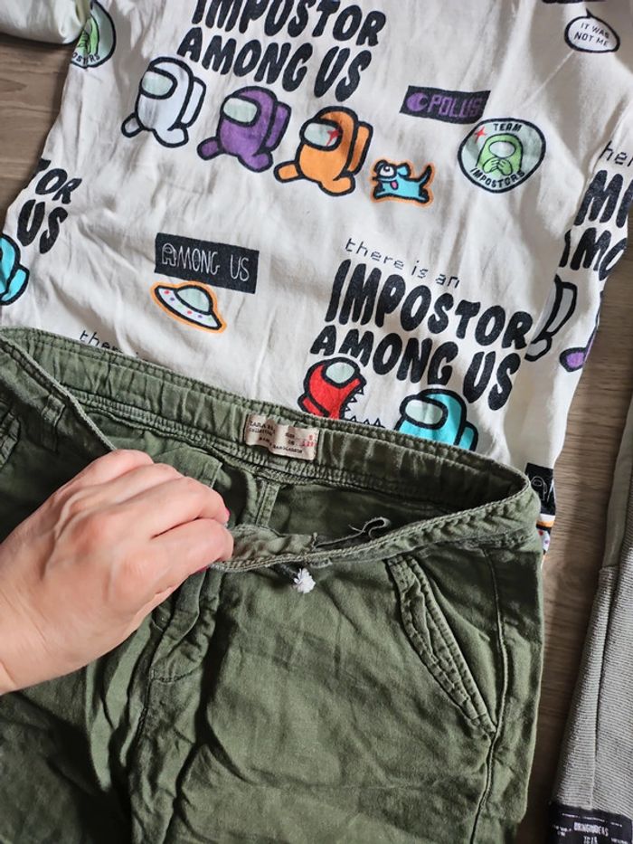 J'offre un pantalon bon etat ( un des zip en bas n est pas toujours bon et un tee-shirt pyjama ayant une petite trace )