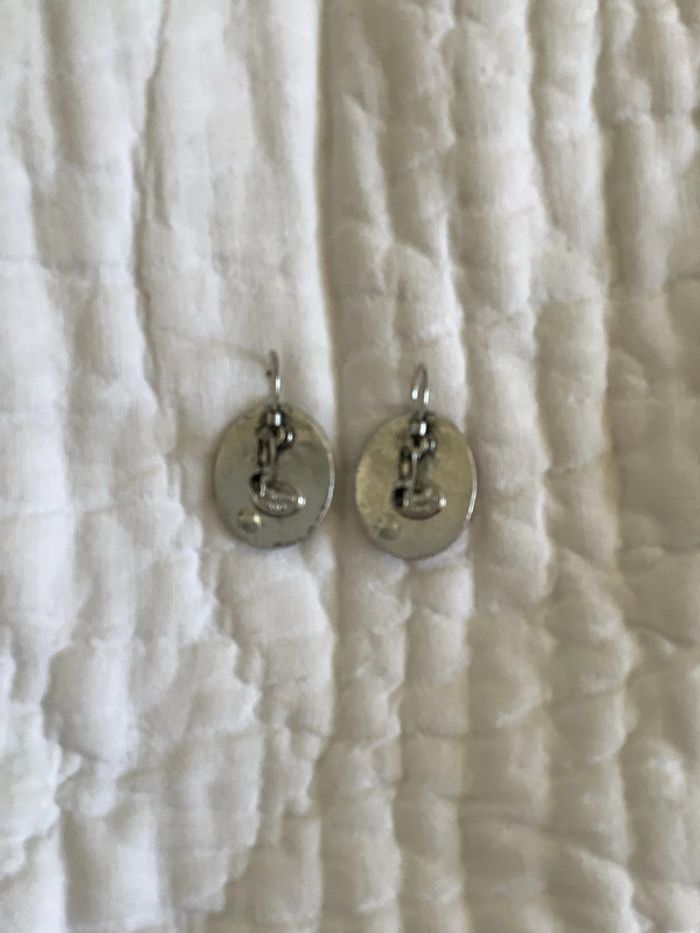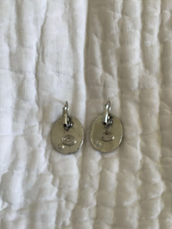 Boucles d’oreilles percées en métal émaillé et strass, vintage 1990 - photo numéro 3
