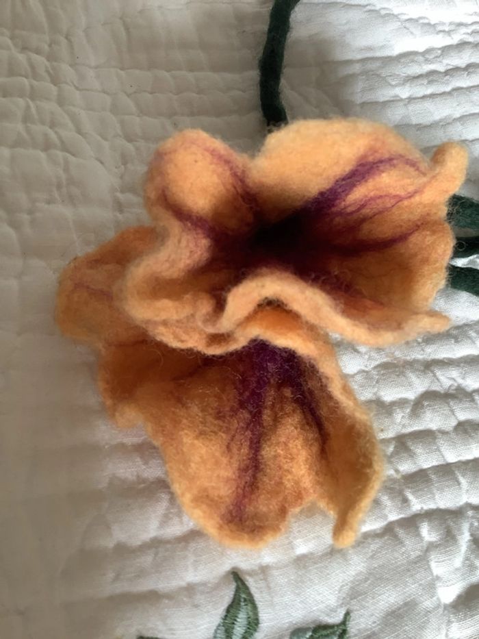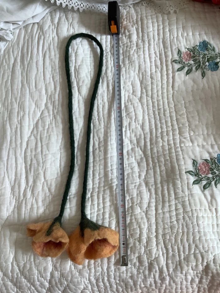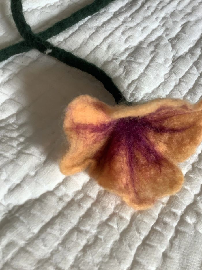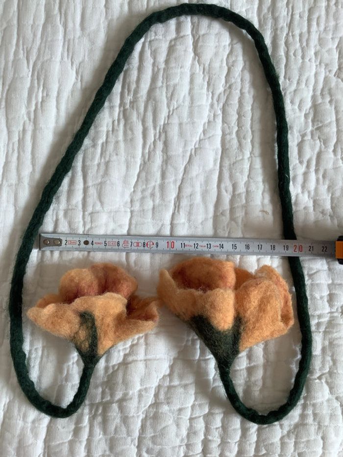 Tige de laine bouillie terminée par un liseron de laine bouillie, peut s’utiliser comme collier, ceinture ou accessoire de décoration. Neuf, jamais utilisé ni exposé. Dimensions : voir photo.