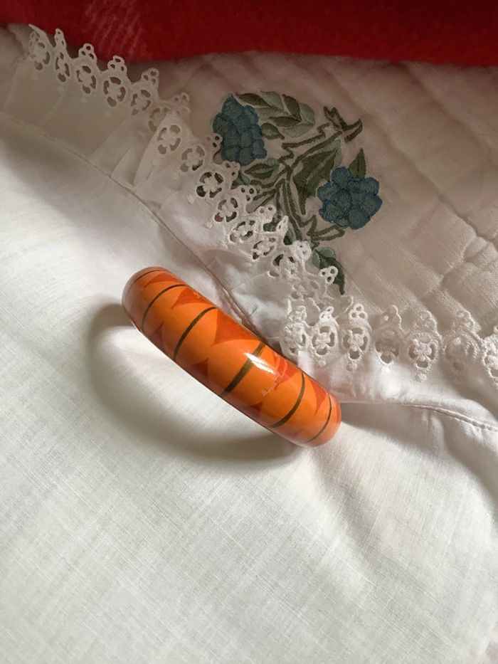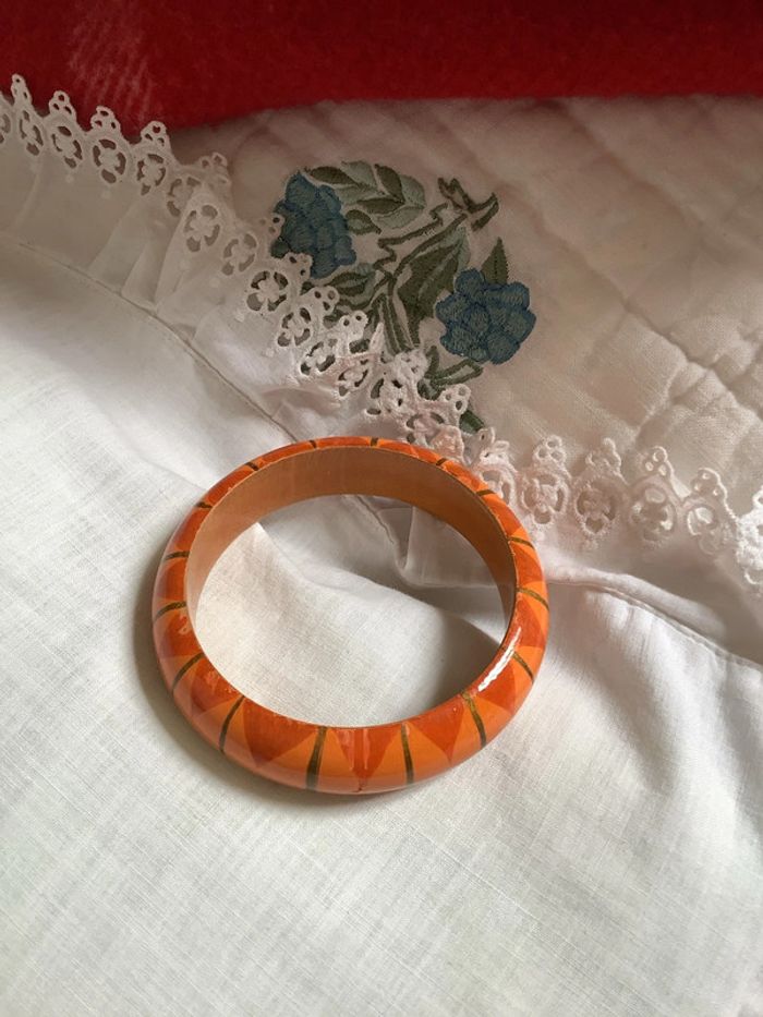 Ensemble de 2 bracelets en bois peint à la main,  artisanal à motif géométrique - photo numéro 10