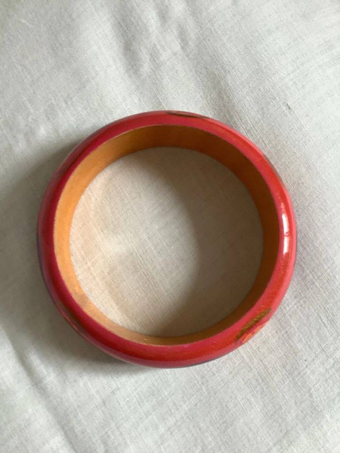 Ensemble de 2 bracelets en bois peint à la main,  artisanal à motif géométrique - photo numéro 5