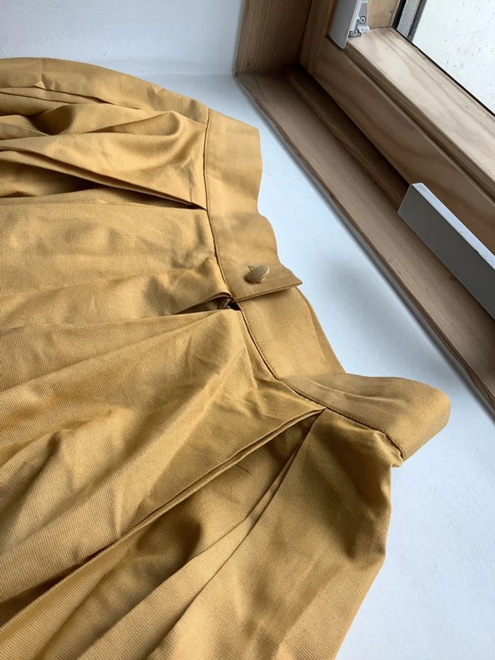 Jupe longue ample de la marque parisienne « A La Bonne Renommée », qui n’existe plus, rare et collector. Coton léger, ferme par zip et bouton recouvert de tissu, plis doubles à la taille. Taille S. Tour de la taille : 62 cm, longueur : 94 cm.